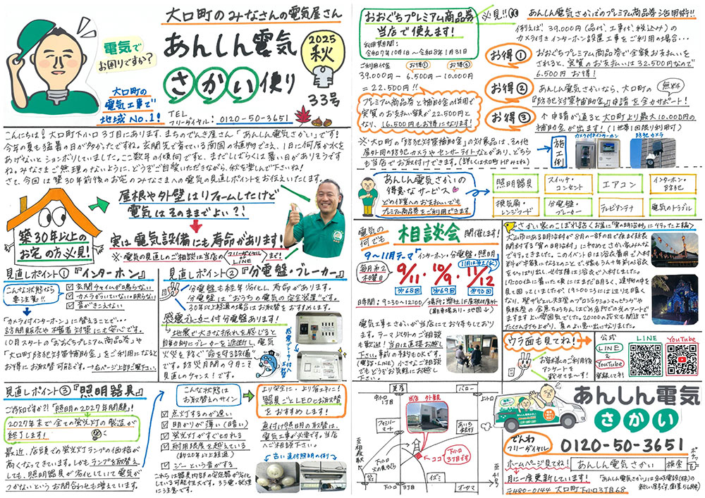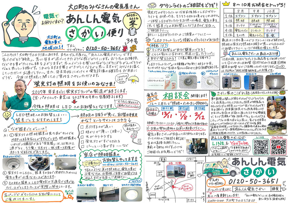 電球1個からでも酒井がすぐに駆けつけます。近くて安心、顔の見える電気屋として、より大口町の皆さまの「あんしん」に寄り添える電気屋を目指して、これからも一歩ずつ挑戦を続けてまいります!