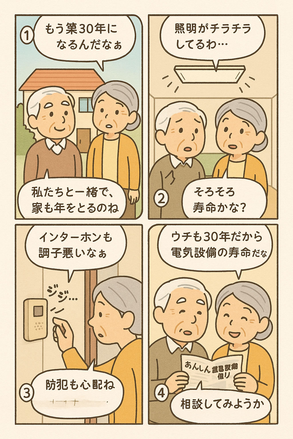 あんしん電気さかいのYouTube チャンネルでは、築30年の家で起こりやすい電気のお困りごとなどを分かりやすく解説していますので、ぜひご覧ください。